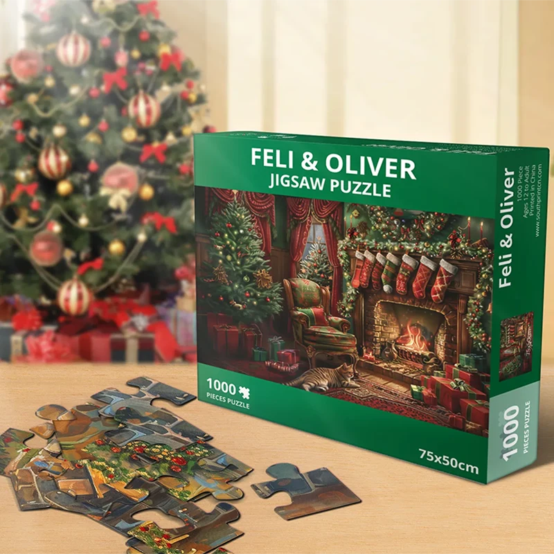 Per celebrare la gioia e il calore delle festività natalizie, Cangnan South Print Co., Ltd ha progettato con cura questo puzzle di allegria natalizia, realizzato appositamente per bambini e famiglie. Il puzzle contiene 1000 pezzi di cartone di alta qualità, con disegni festivi con Babbo Natale, fiocchi di neve, alberi di Natale e accoglienti scene familiari, perfette da condividere con i propri cari.